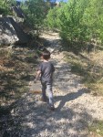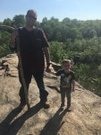 This was a very nice location with lots of trails.  Most of them are fairly level.  There were some long hills but it was nothing a small child couldn't do unassisted.  There were large rock structures right off the paths and there was a trail around the lake.  The highest elevation is 450 feet a the quarry which is where I said I really wanted to go.  Getting up there was literally a rock scramble.  For the most part my rule with Spencer is if he can't climb it himself, he can't do it.  Well that went out the window here.  Rob and I took turns trying to show him where to put his feet, lifting him up to the next spot and letting me climb up behind him or Rob just passing him to me.  It was totally worth it when we got to the top.  The views were amazing.  It was definitely a little harrowing being up that high with a preschooler and sheer drops on either side.  Rob had a firm hand on him the whole time, thank goodness, or else we would have been up there for two minutes.